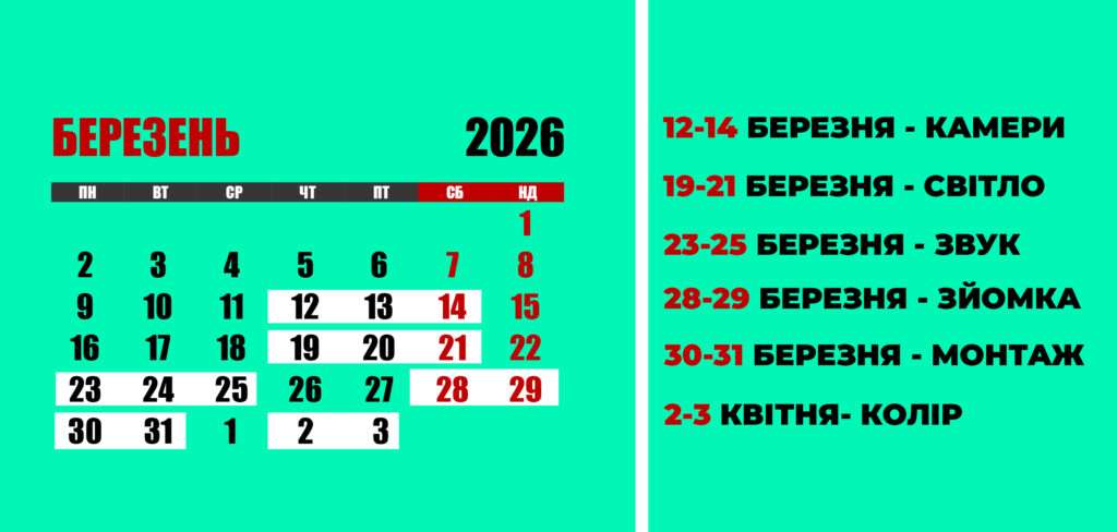 Локація для навчання планується постійна, але на практичних заняттях можливі виїзди до студії чи на локацію зйомок для практики.